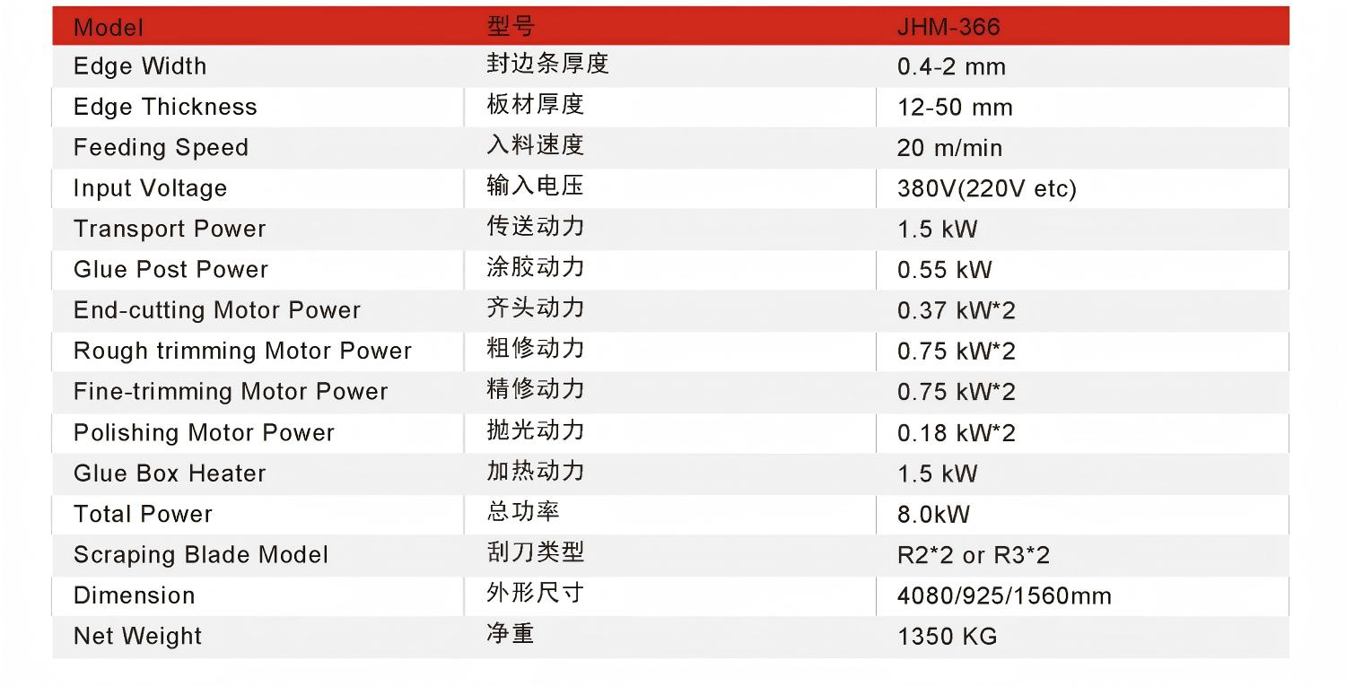 Flexible and adaptable, wide range of applications: It can handle edge banding strip thicknesses of 0.4-2mm and board thicknesses of 12-50mm. The input voltage supports 380V (compatible with 220V), flexibly adapting to different materials and specifications of boards to meet diverse production needs.